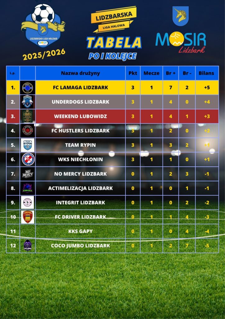 Wyniki I kolejki i tabela Lidzbarskiej Ligi Halowej 2025/2026 Wysłany przez: MOSiR Lidzbark W zakładce Lidzbarska Liga Halowa znajdują się wszystkie statystyki. Czytaj więcej... 18 LIS 0